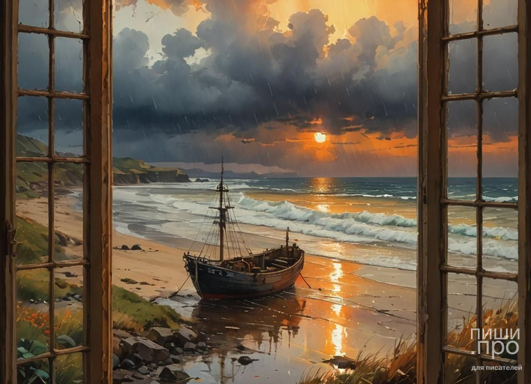 Отсыревшие ставни распахнулись — подул сильный ветер с моря. Он предвещал прилив. Старый пират хряхтя подошёл к окну и начал протирать уцелевший глаз: ему показалось или под окном на отмели стоял его старый бот?